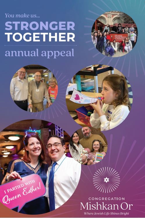 Stronger Together, Mishkan Or’s Annual Campaign, is an incredible way to support and strengthen the vibrancy of Mishkan Or worship for holidays, festivals and Shabbat, and fostered a true caring community. We honor the past and build the future and carry forward the wisdom and legacy of those who came before us while shaping a Mishkan Or for generations to come.