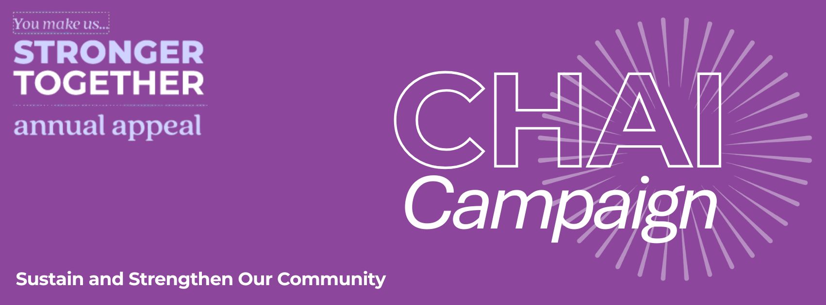 We invite you to join our CHAI Campaign by giving in meaningful multiples of 18 ($36, $72, $180, $360, or any amount that feels right) and be part of this shared commitment to our future.